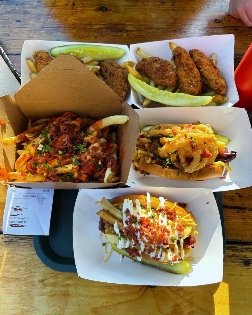 Everything in that picture was FANTASTIC. I ended up going with the Mayflower Beach Dog, which had skin-on fries, melted cheddar, bacon bits and a house-made garlic aioli on it, while my wife went with the West Dennis Beach Dog, which had macaroni and cheese, crispy onions and bacon bits on it. Both of them were crazy good! We ended up getting a side of the Dynamite Fries, which had queso cheese, bacon bits, green onions and sriracha. These were also fantastic.