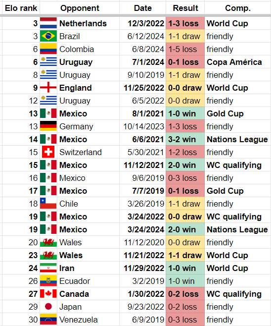 In other words, he struggled against good competition. Now to be fair to Berhalter, he can only play who is in front of him. His record against top-30 ranked teams was just abysmal though.