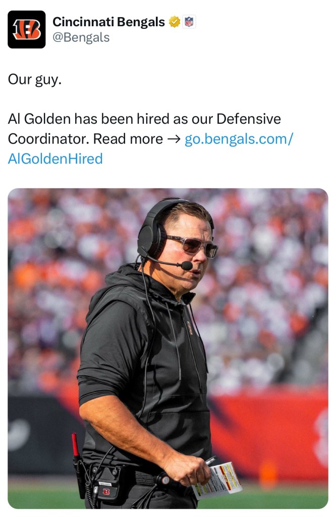 Golden previously served as the Bengals’ linebacker coach back in 2020-2021 before taking the defensive coordinator job at Notre Dame.
